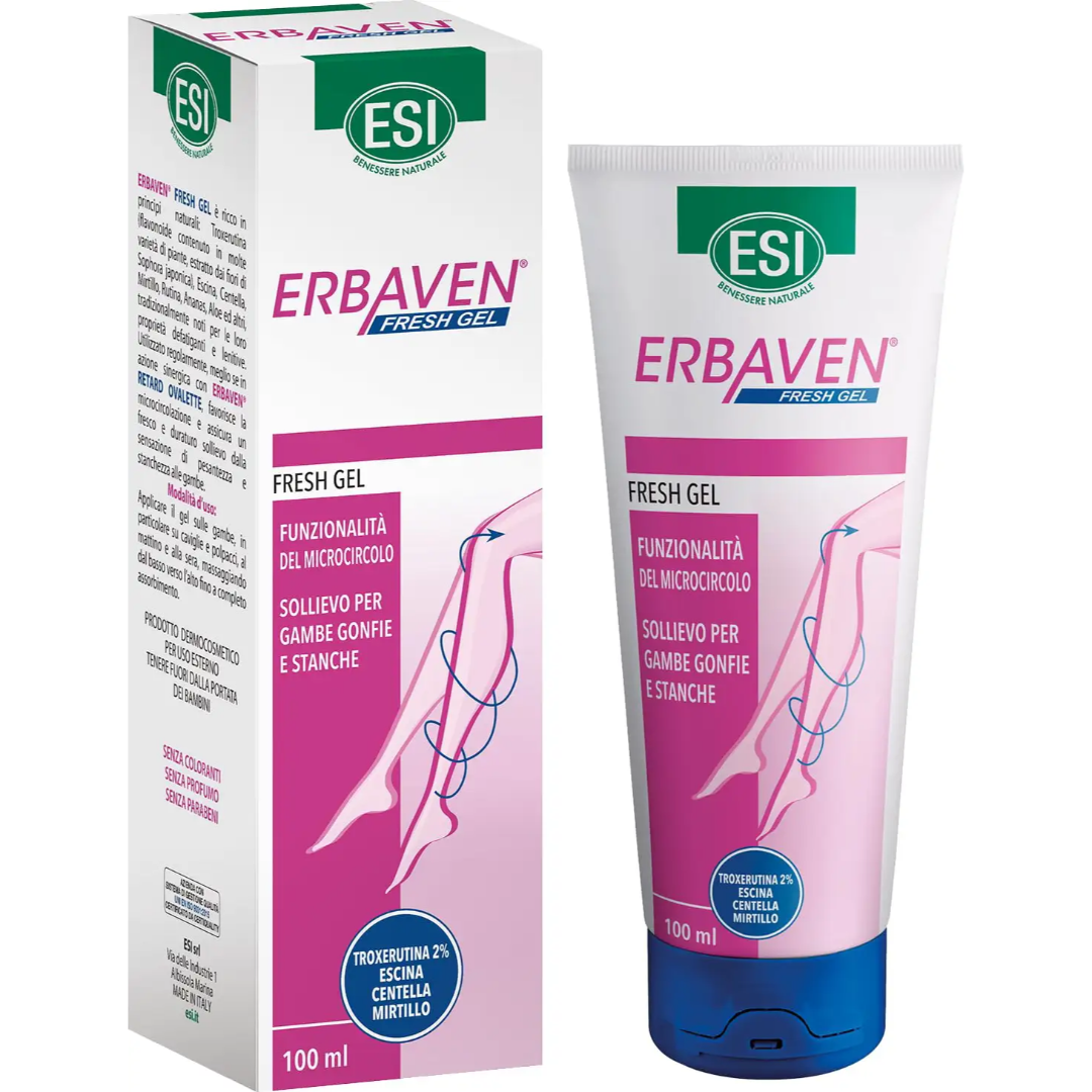 Erbaven Fresh Gel 100ml delivers targeted relief for swollen and tired legs with a unique blend of troxerutin and natural extracts including wild chestnut, ginkgo, pineapple, centella, aloe, mint, blueberry, arnica, ginger, and New Zealand green mussel. Formulated for sensitive skin and safe during pregnancy, this refreshing gel supports venous circulation, reduces swelling, and strengthens capillaries. Easy to apply, it absorbs quickly without residue, leaving legs feeling cool, light, and revitalized. Packaged in a protective boxed tube, it is manufactured in Italy for trusted quality.